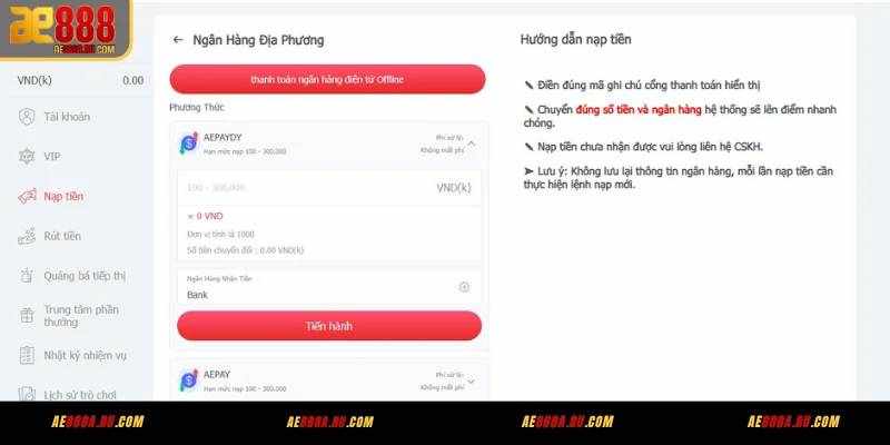 Quy trình nạp tiền AE888 nhanh chóng và an toàn
