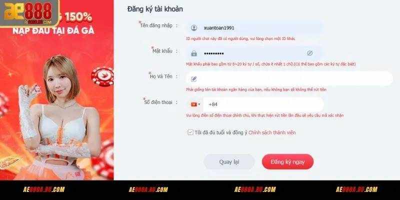 Quy trình tạo tài khoản tại AE888 được thiết kế rõ ràng, dễ thao tác:
